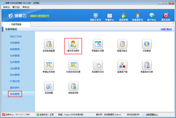 以信管飛RMS標(biāo)準(zhǔn)版為例,介紹一下,進(jìn)銷存管理軟件如何設(shè)置操作員不可查看客戶的聯(lián)系電話及地址相關(guān)信息。