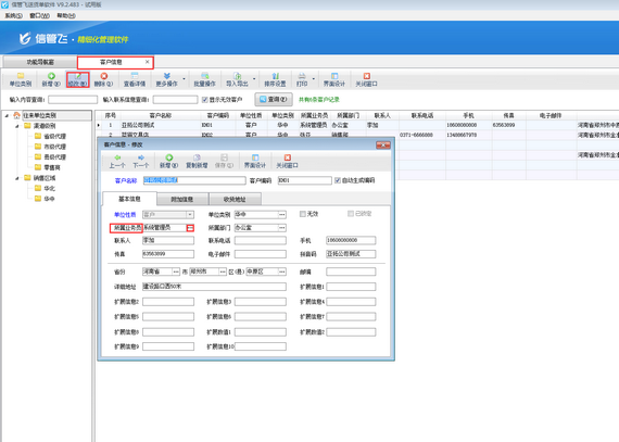 然后關(guān)閉修改客戶信息界面后,客戶信息中所屬業(yè)務(wù)員已修改成功。如下圖所示: