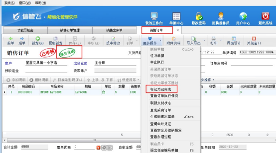 如存在引用部分訂單數(shù)量,之后不再引用此訂單開(kāi)單,可手動(dòng)標(biāo)記訂單為已完成狀態(tài)。如下圖: