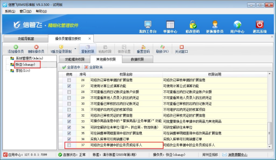 歡迎下載試用可控制操作員修改經(jīng)手人及業(yè)務(wù)員權(quán)限的軟件:信管飛RMS軟件