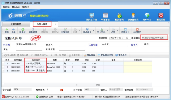 歡迎下載試用可銷(xiāo)售出庫(kù)引單采購(gòu)入庫(kù)單的軟件:信管飛倉(cāng)庫(kù)管理軟件
