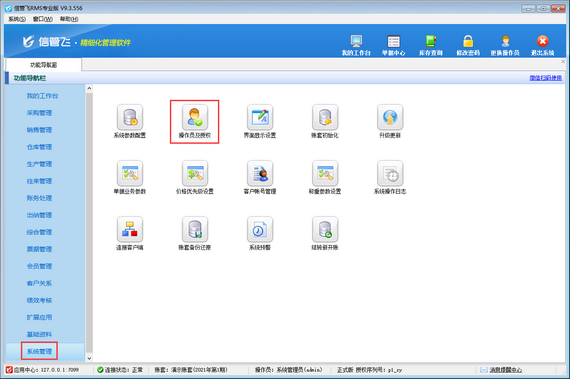 登錄軟件,在功能導航窗選擇“系統管理”—》“操作員及授權”,進入“操作員管理及授權”界面,如下圖所示。