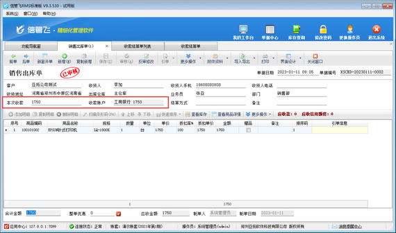 收款結(jié)算單可用于登記收款信息,并結(jié)銷應(yīng)收款記錄,信管飛軟件支持在開銷售出庫單時(shí)直接輸入本次收款金額,銷售出庫單審核后軟件會(huì)自動(dòng)生成收款結(jié)算單并結(jié)銷該單據(jù)產(chǎn)生的應(yīng)收款。