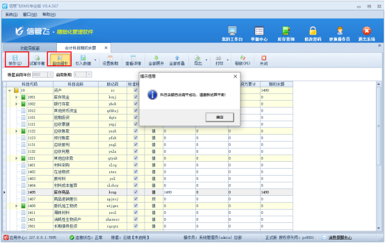 引入數(shù)據(jù)后,點(diǎn)擊工具欄“自動(dòng)調(diào)平”按鈕進(jìn)行調(diào)平操作,調(diào)平后可點(diǎn)擊“試算平衡”,沒(méi)有問(wèn)題點(diǎn)擊“保存”按鈕,保存設(shè)置,如下圖所示: