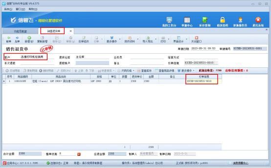 退款退貨情況,需要在“銷售管理”—》“銷售退貨單”,可引單已開的銷售出庫單,明細修改為退貨的商品,保存單據(jù)即可,會生成對應的客戶退貨應退款記錄,如下圖所示: