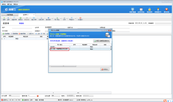解決方法如下:開單界面點擊“導入導出”-》“從EXCEL導入明細”重新進行導入操作,導入選項處取消勾選重復記錄不導入,取消后點擊開始導入,明細即可導入成功。