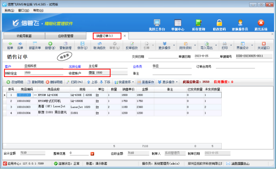 方式一:軟件不需要體現(xiàn)退款記錄,可直接打開銷售訂單修改預(yù)收定金金額為1500元,如下圖所示: