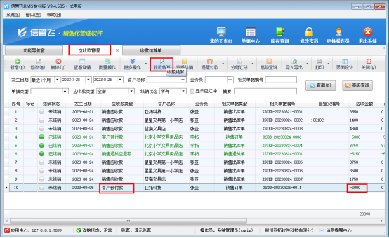 信管飛RMS軟件是集采購管理、銷售管理、倉庫管理、往來應(yīng)收應(yīng)付款管理為一體的軟件,軟件支持登記客戶預(yù)付款,客戶下單前可先支付定金,有用戶咨詢上月的預(yù)付款還未結(jié)銷需要退回一部分,軟件中該如何操作?本文以信管飛RMS軟件為例進行示范下。