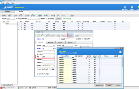 信管飛RMS、信管飛倉庫管理軟件等可以在軟件使用前維護好商品信息,方便開單直接選擇,有客戶存在商品信息除單位、商品編碼、規格外還有其他固定的商品屬性,軟件的商品信息維護界面支持擴展信息,可以把其他固定的商品屬性內容輸入在擴展信息中,如下圖所示,自定義“商品擴展信息1”為商品“顏色”。