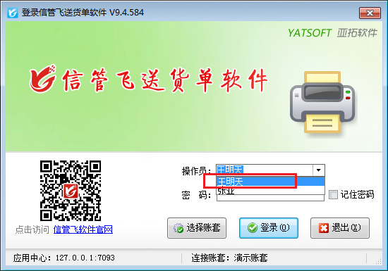 修改之后點擊菜單欄“更換操作員”重新登錄,操作員登錄界面和軟件界面下方操作員顯示是“王明天”,如圖所示:
