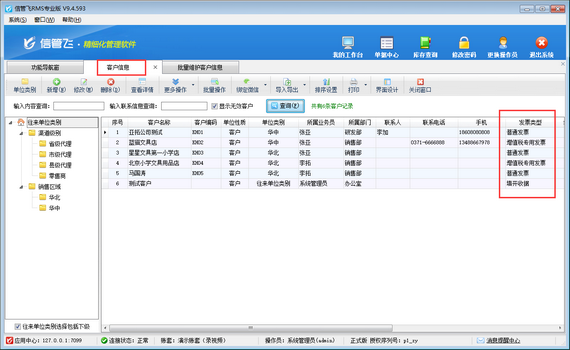 信管飛RMS支持開銷售單界面選擇發(fā)票類型,可以根據(jù)實際需要選擇不同的開發(fā)票方式。在使用過程中,不同客戶需要的發(fā)票類型可能會不一樣,為了提高開單效率,有時需要對不同的客戶設(shè)置默認發(fā)票類型,方便開單選擇客戶之后直接進行調(diào)取,本篇文章介紹一下如何批量設(shè)置客戶的默認發(fā)票類型?