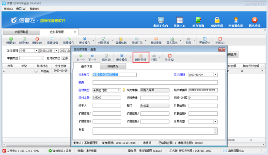 信管飛軟件在新增或者修改應收應付單據時,支持添加文檔、圖表等附件資料,可掃描或導入與業務單據相關的電子文件,方便用戶更全面、直接地查詢業務單據的全過程,有利于企業對業務單據的管理。下面我們以信管飛軟件專業版采購應付款為例介紹一下附件資料管理功能的使用。