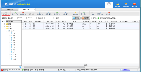 信管飛出納記賬軟件支持新增、修改現金/銀行日記賬憑證,有些客戶在使用過程中,不需要操作員進行新增,只用查看憑證即可,軟件支持設置操作員權限,本篇文章介紹下如何操作?