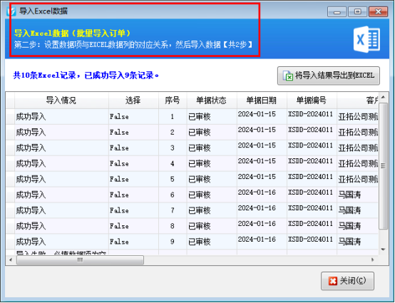 關(guān)閉此界面可看到銷售訂單列表中會(huì)顯示已成功導(dǎo)入的銷售訂單記錄,導(dǎo)入后默認(rèn)是未審核狀態(tài),可以批量操作審核,如下圖所示: