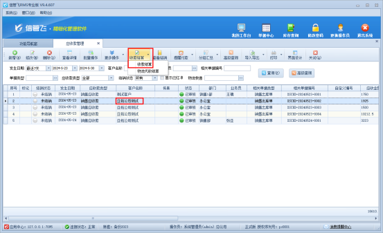 在批量結算過程中,信管飛軟件提供了詳細的數(shù)據核對功能,確保每一筆應收款的金額、日期等信息都準確無誤。信管飛軟件幫助企業(yè)避免了因人為操作失誤而帶來的財務風險。結算單保存審核結算單后,對應的應收款結銷狀態(tài)自動變?yōu)橐呀Y銷,如下圖所示: