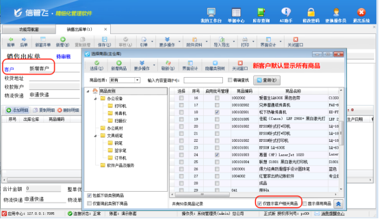 信管飛倉庫管理軟件、信管飛RMS軟件、信管飛送貨單軟件推出“選擇商品窗口僅顯示客戶相關商品”功能,讓銷售開單更精準、更高效,助力企業實現精細化客戶服務與管理升級。