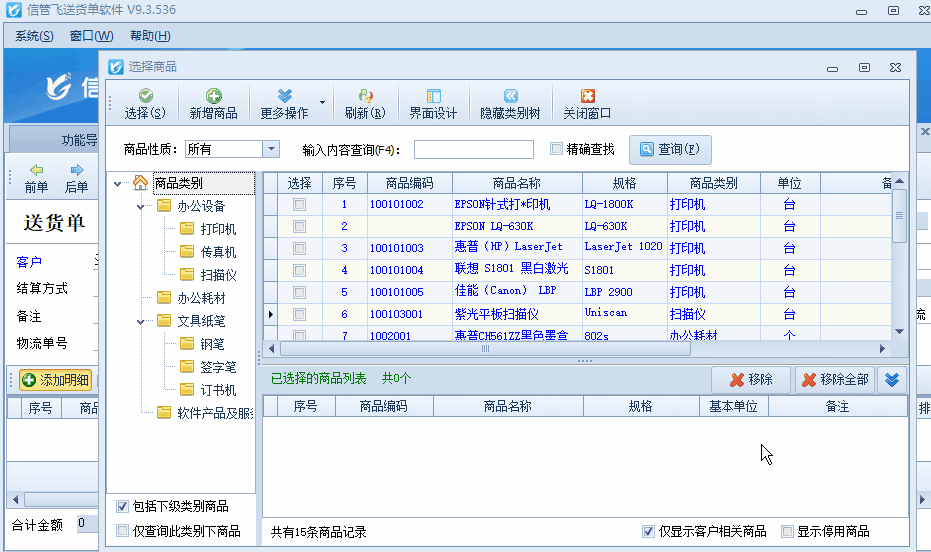 信管飛送貨單軟件開送貨單前可提前添加好商品信息到基礎資料中,新開送貨單選擇客戶后,選擇“添加明細”可彈出選擇商品界面,可選擇添加好的商品信息,有用戶反映在選擇商品界面,查詢窗口輸入商品簡寫不自動過濾,需要點擊下查詢才會進行檢索,如下圖所示: 經檢查發現,原因是啟用了參數影響,解決辦法如下,在功能導航窗