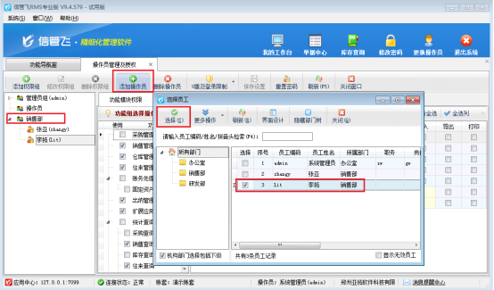 此文章相關演示視頻:如何更換操作員所在權限組? 信管飛RMS軟件支持設置多個操作員登錄軟件,并且支持添加權限組,同一個權限組下的操作員權限是一樣的,不需要再重新設置操作員權限,本文以信管飛RMS軟件專業版為例演示一下如何更換操作員所在權限組到其他權限組?