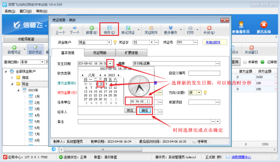 此文章相關演示視頻:如何修改出納憑證發生日期 信管飛軟件如果發現憑證錄入的數據有問題,可以點擊菜單欄中的“修改憑證”按鈕,可以對已錄入的憑證進行修改,修改后直接保存即可生效,對于已審核的憑證不支持直接反審修改。部分用戶有時單據審核后發現發生日期選擇錯了,此時該如何處理呢?下面以信管飛出納記賬軟件為例,介
