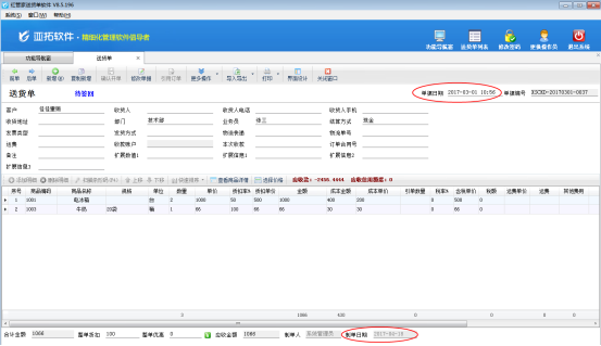 亞拓管理軟件、紅管家倉庫管理軟件及紅管家送貨單軟件開單時單據日期默認是電腦系統的當前日期,部分用戶有時需要補錄以前漏開的單據,就需要進行補單,如何補錄以前的單據呢?本篇文章以紅管家送貨單軟件為例詳細介紹一下送貨單軟件內如何補錄以前的送貨單單據? 登錄軟件,在功能導航窗點“業務處理”→“新開送貨單”即可進入“送貨單”開單界面,