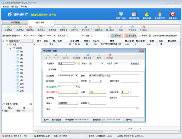 紅管家出納軟件是一款針對各類企事業單位財務出納記賬開發的,集現金日記賬記賬與點驗、銀行日記賬記賬與核帳、應收應付往來賬管理、票據管理(支票管理、承兌匯票管理)、發票管理、工資管理、員工借款管理、費用報銷管理等為一體的財務出納管理記賬軟件(出納管理軟件)。 許多用戶在使用軟件正式記賬之前都需要維護資金賬戶并錄入期初余