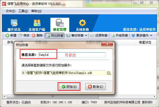 信管飛送貨單軟件、信管飛倉庫管理軟件、信管飛RMS軟件等軟件數據都是保存在賬套中,有時可能會遇到登錄時提示賬套列表不存在且在應用中心程序的賬套管理中沒有賬套信息的情況。這時我們可以通過附加賬套的方式把賬套文件進行附加進來。 以信管飛送貨單軟件為例。示范下如何附加賬套?打開紅色的應用中心程序,選擇賬套管