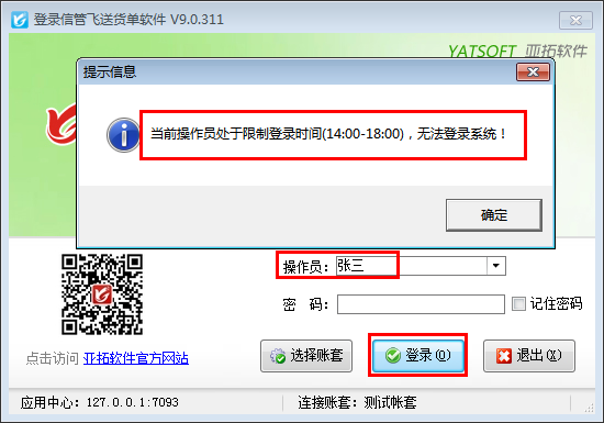 為了使用戶可以更好的管理公司賬套數(shù)據(jù),信管飛送貨單軟件、信管飛RMS、信管飛出納記賬軟件、信管飛倉庫管理軟件都支持設(shè)置操作員的登錄限制,用戶可以自定義設(shè)置操作員登錄軟件的時間,設(shè)置后,操作員在受限制時間內(nèi)則無法登錄軟件。 本文以送貨單軟件為例,介紹一下如何設(shè)置操作員登錄限制。 登錄軟件,在