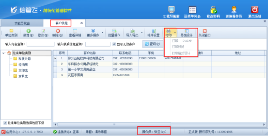 信管飛RMS軟件、信管飛倉庫管理軟件、信管飛送貨單軟件等都支持設(shè)置操作員權(quán)限,以控制操作員登錄軟件所顯示的功能,如公司需要限定操作員僅能查看和選擇自己所屬客戶信息,軟件中可以進行控制。 以“信管飛送貨單軟件”為例,示范下如何控制操作員僅能查看所屬為自己的客戶信息。首先需要在客戶信息中進行整理下客戶的所