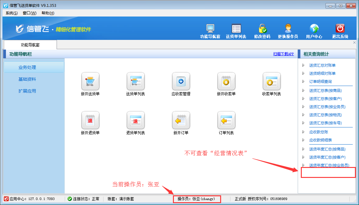 信管飛RMS、信管飛倉(cāng)庫(kù)管理軟件、信管飛送貨單軟件、信管飛出納記賬軟件中都支持單據(jù)界面設(shè)計(jì),用戶可根據(jù)自身業(yè)務(wù)要求對(duì)軟件界面進(jìn)行設(shè)置,包括配置數(shù)據(jù)項(xiàng)名稱、啟用擴(kuò)展數(shù)據(jù)項(xiàng)、顯示先后順序、設(shè)置顯示寬度、對(duì)齊方式、是否必填、取值方式及取值設(shè)置等。 軟件內(nèi)都可以設(shè)置多個(gè)操作員并對(duì)操作員賬號(hào)設(shè)置權(quán)限,部分用戶不希望員工賬號(hào)可以隨便修改