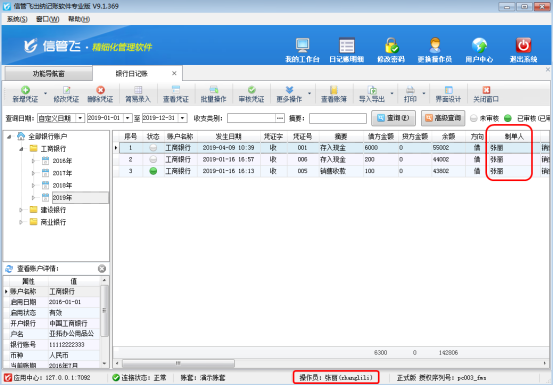 信管飛出納記賬軟件、信管飛RMS標準版和專業版都支持設置操作員不可查看其他人員錄入的出納憑證的權限,本篇文章以信管飛出納記賬軟件專業版為例詳細介紹一下如何設置操作員不可查看其他人員錄入的出納憑證。 在功能導航窗點“系統管理”—》“操作員及授權”即可進入“操作員管理及授權”界面,選中操作員賬號,在“其他操作權限”界面將“不可查