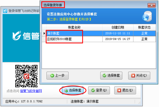 亞拓軟件旗下的信管飛RMS、信管飛倉庫管理軟件、信管飛送貨單軟件、信管飛出納記賬軟件、信管飛票據打印軟件等軟件程序安裝后會顯示兩個圖標,一個是應用中心程序(紅色圖標),一個是客戶端程序(藍色圖標)。這些軟件都含有賬套管理功能,在應用中心里面可以建立多個賬套,已使用的帳套如果不再繼續使用,可以停用帳套,停用帳套后,客戶端程序登錄時無法連接該帳套。我們以信管飛出納