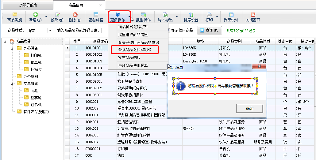 信管飛RMS、信管飛倉庫管理軟件、信管飛送貨單軟件等支持設置多個操作員登錄軟件,對登錄的操作員軟件可控制操作員權限。開單過程中可能存在單據商品信息輸入錯誤現象,可在基礎資料—》商品信息中對錯誤商品進行替換。為避免多個操作員重復替換出錯,可設置操作員不可批量替換商品(業務單據)的權限,指定一個操作員允許操作。 本文以信管飛送貨