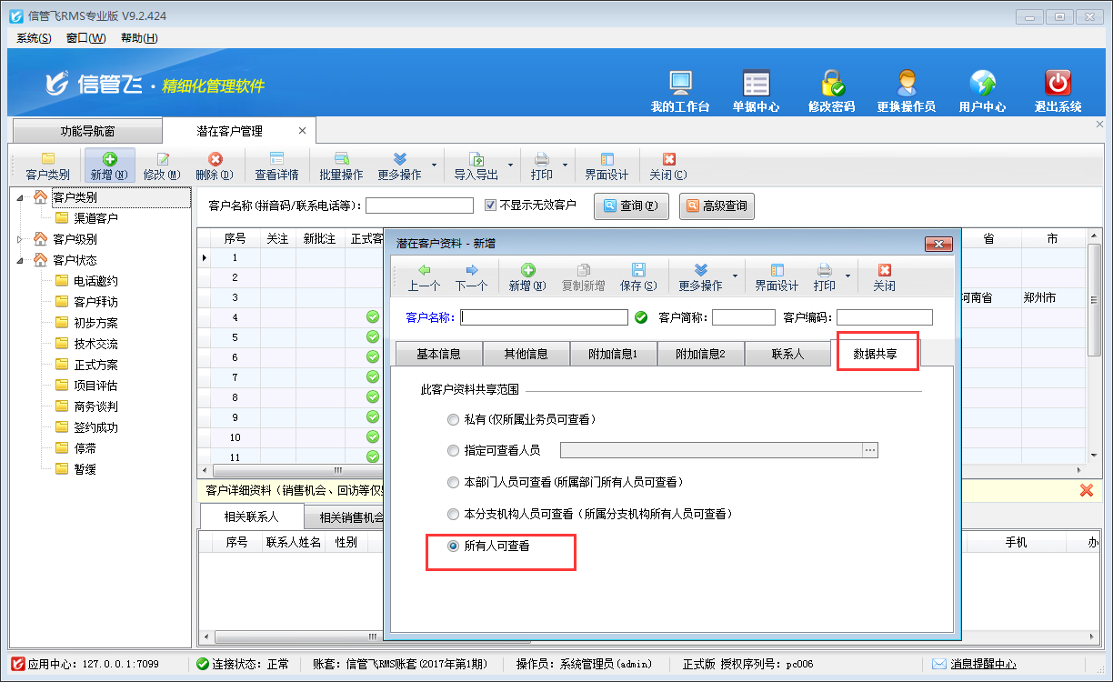 銷售機會管理用于管理在推銷過程中,由于環(huán)境發(fā)生變化,給銷售人員提供的實現(xiàn)其推銷目的的一種可能性,即銷售線索,各種途徑搜集過來的銷售業(yè)務信息(如客戶需求、購買意向、招投標信息等)。銷售機會信息可根據共享范圍進行設置,實現(xiàn)銷售機會的分級管理。本篇文章介紹一下如何批量設置銷售機會共享范圍? 在功能導航窗點擊“客戶關系”—》“銷售機