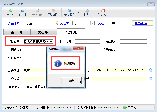 出納記賬軟件中默認不允許直接修改已審核憑證的擴展信息,但是如需修改已審核憑證的擴展信息,系統(tǒng)支持參數(shù)配置,如下圖所示,啟用參數(shù):“可修改已審核憑證的擴展信息”,參數(shù)值可自定義,默認為“ext1,ext2(擴展信息1,擴展信息2)”,參數(shù)啟用后即可修改已審核憑證的擴展信息,但是如需普通操作員可修改已審核憑證的擴展信息,需要另外設(shè)置一下操作員權(quán)限,本文介紹一下如何