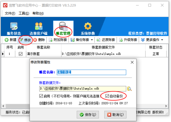 信管飛票據(jù)打印軟件、信管飛送貨單軟件、信管飛RMS、信管飛出納記賬軟件、信管飛倉庫管理軟件都支持設置賬套自動備份,我們強烈建議啟用自動備份功能,以便賬套出現(xiàn)問題的時候從賬套備份文件中恢復數(shù)據(jù)。下面我們以信管飛票據(jù)打印軟件為例詳細介紹一下如何啟用賬套自動備份功能? 首先打開軟件應用中心主界面,點擊“系統(tǒng)參數(shù)”—》“賬套備份參數(shù)
