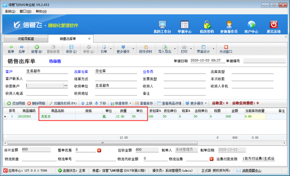 信管飛RMS、信管飛送貨單軟件等都支持開單前錄入好商品的預設價格,如預設采購價、預設售價等,方便開單選擇商品時自動獲取價格信息。如下圖所示,設置商品“洗發(fā)水”預設售價50元/瓶,以信管飛RMS(進銷存管理軟件)為例示范一下如何設置銷售開單時自動取商品預設售價? 軟件支持價格優(yōu)先級設置,啟用價格優(yōu)先級后軟件可以自動按照設置的價