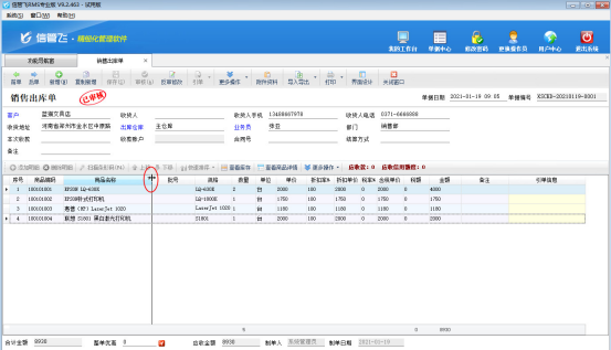 信管飛RMS、信管飛倉(cāng)庫(kù)管理軟件、信管飛送貨單軟件、信管飛出納記賬軟件都可根據(jù)用戶自身業(yè)務(wù)特點(diǎn)進(jìn)行自定義單據(jù)內(nèi)容的顯示寬度,以滿足更多用戶的需求。下面我們以信管飛RMS專業(yè)版的銷售出庫(kù)單為例介紹一下單據(jù)內(nèi)容顯示寬度的設(shè)置方法。方法一:通過界面設(shè)計(jì)調(diào)整單據(jù)內(nèi)容的顯示寬度 登錄軟件,在功能導(dǎo)航窗點(diǎn)“銷售管理”—》“銷售出庫(kù)單”即