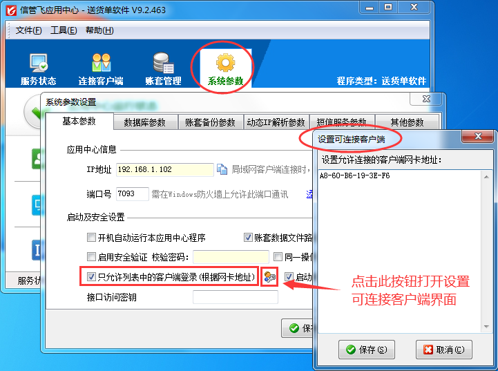 部分信管飛軟件用戶在登錄軟件時(shí)會(huì)出現(xiàn)軟件登錄不成功的情況,如下圖所示,系統(tǒng)彈出提示信息:應(yīng)用中心不允許此客戶端連接! 如出現(xiàn)以上問題,可根據(jù)下面的解決方法進(jìn)行解決: 信管飛系列軟件在軟件應(yīng)用中心中支持設(shè)置可連接的客戶端電腦(根據(jù)網(wǎng)卡地址判斷),如下圖所示,勾選“只允許列表中的客戶端登錄(根