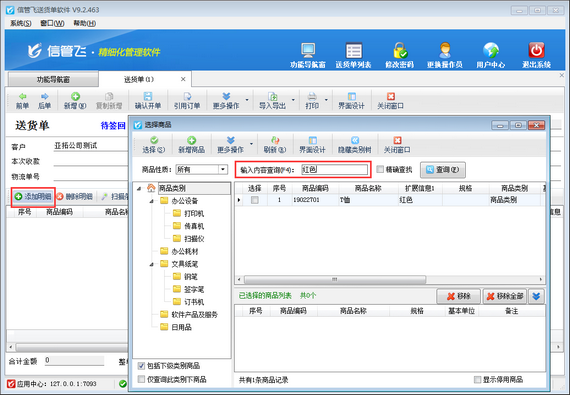 信管飛RMS、信管飛倉(cāng)庫(kù)管理軟件、信管飛送貨單軟件開單時(shí)都支持選擇系統(tǒng)內(nèi)已錄入的商品信息,進(jìn)行快速選擇商品來(lái)開單。開單時(shí),選擇商品窗口,可以根據(jù)商品編碼、商品名稱、規(guī)格、條形碼等信息查詢商品,如果“商品擴(kuò)展信息”錄入了數(shù)據(jù),我們也可以根據(jù)“商品擴(kuò)展信息”進(jìn)行查詢。下面我們以信管飛送貨單軟件為例介紹一下新開送貨單開單選擇商品時(shí),根據(jù)“商品擴(kuò)展信息”查詢商品的操作