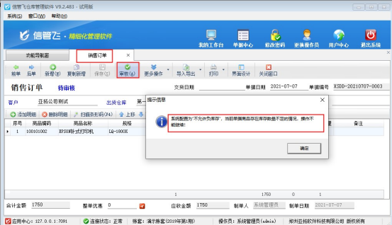 信管飛倉庫管理軟件、信管飛RMS軟件都支持管理商品庫存,軟件默認允許負庫存出庫,對于銷售訂單有用戶需要商品沒有庫存的時候無法下訂單,本文以“倉庫管理軟件”為例,示范下如何設置銷售訂單商品負庫存時不能審核。 演示視頻觀看鏈接:倉庫管理軟件如何設置銷售訂單商品負庫存不能審核? &nb
